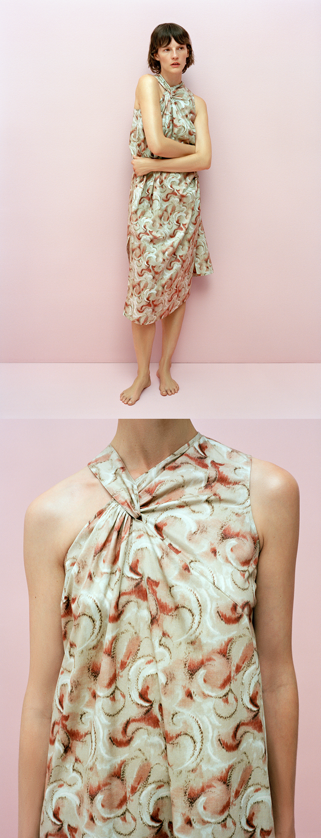Beautiful shoulder-baring asymmetry, an eye-catching interplay of motifs and pastels: the dress for a dream summer.