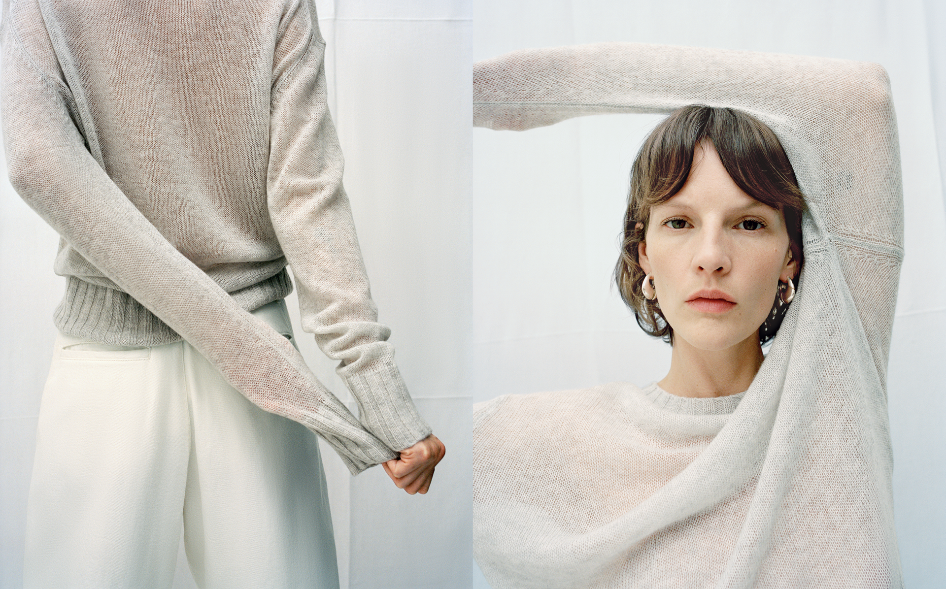 Summer knitwear revisited. A self-assured baring of skin or worn simply with a white poplin shirt, as desired.
