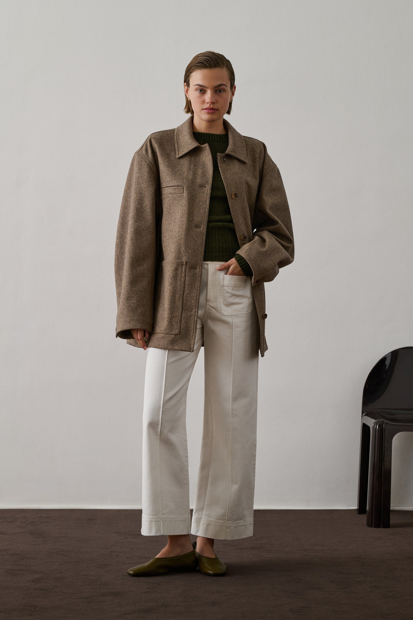 HARRY is a must-have pair of trousers in the Soeur wardrobe, distinguished by its patch pockets at the front and back and its crease running along the leg. Its soft and comfortable wool canvas offers structure while being breathable.