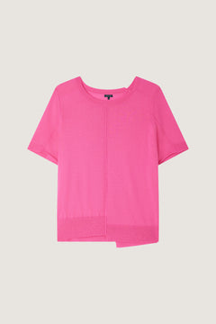 Pink long-sleeved extra-fine gauge merino wool jumper with asymmetrical trims pink